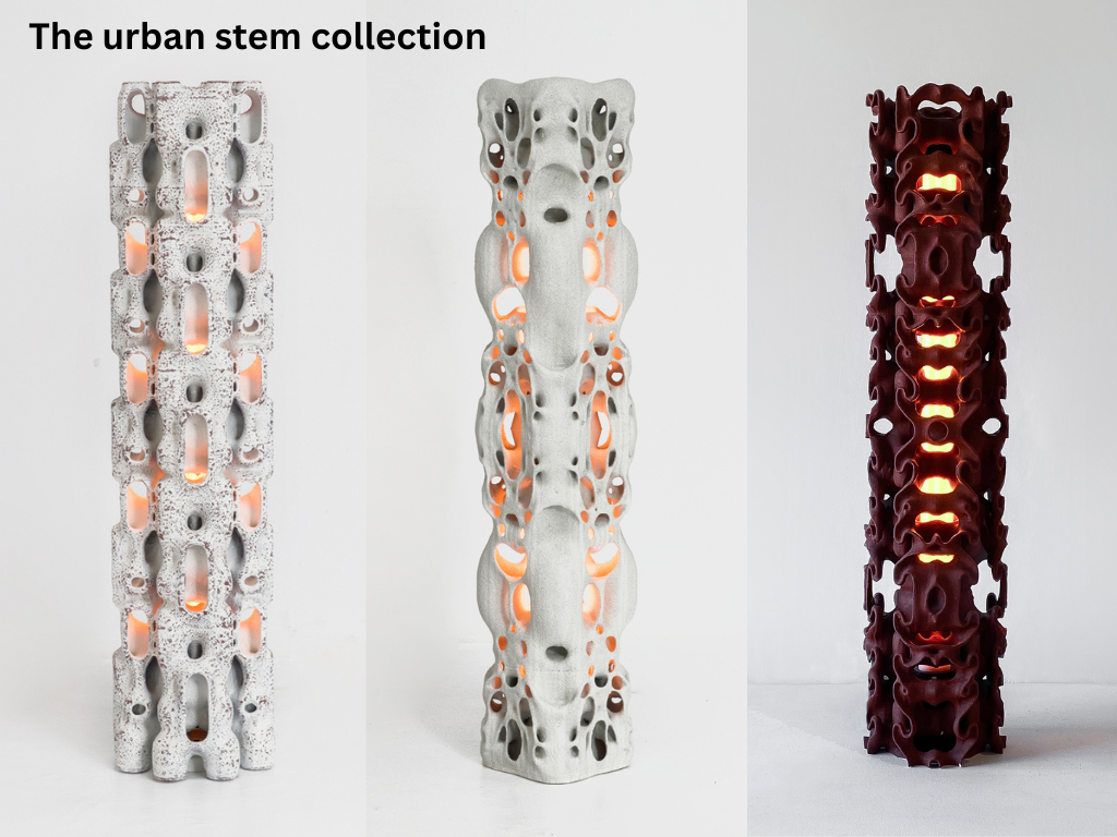 The Urban stem collection is an ongoing project which aimed to create structures that look like they've grown straight from the ground to resemble the wild character of organic matter.Biomimicry has played a key role in research as they tried to find ways of modelling organic geometry digitally. This project explores ideas to reduce our impact in urban design