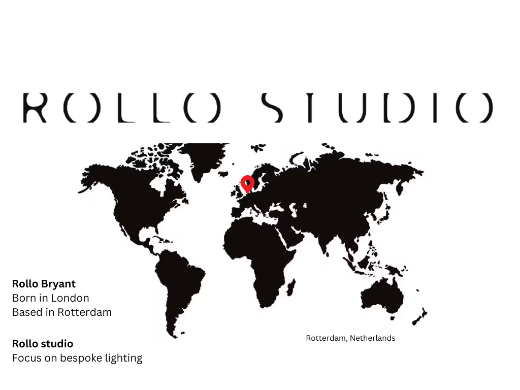 This presentation is about Rollo Bryant who was born in London but is now based in Rotterdam in the netherlands. This is where he set up his design brand called rollo studio which focuses on bespoke lighting and used 3D printing to produce their products which have been presented at design shows around the world