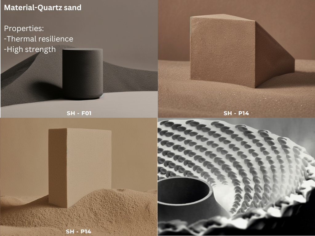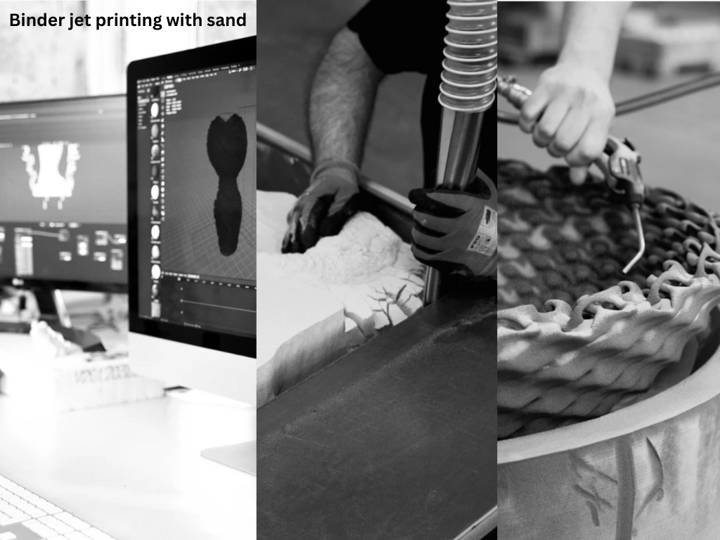 The main material that rollo studio uses is quartz sand which is a raw material and was chosen for its thermal resilience and high strength to ensure that each piece produced was heat resistant and durable. Using quartz sand for 3d printing is considered to be environmentally friendly as the sand is a naturally occurring material and any unused sand can be used again for other projects