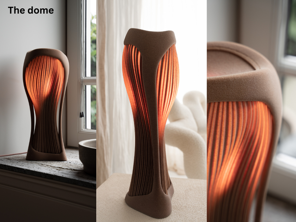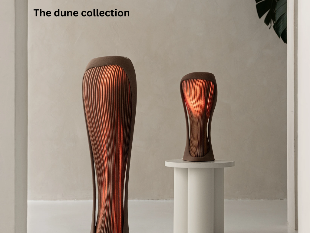 The Dome table lamp is part of the dune collection and has flowing and organic shapes as well as a textured surface to reflect the sand dunes. The light in this lamp is dimmable so that users can decide how much of the red glow is produced. Even when its not in use, the form of this product makes it aesthetically pleasing so it can just be used as a decorative piece.