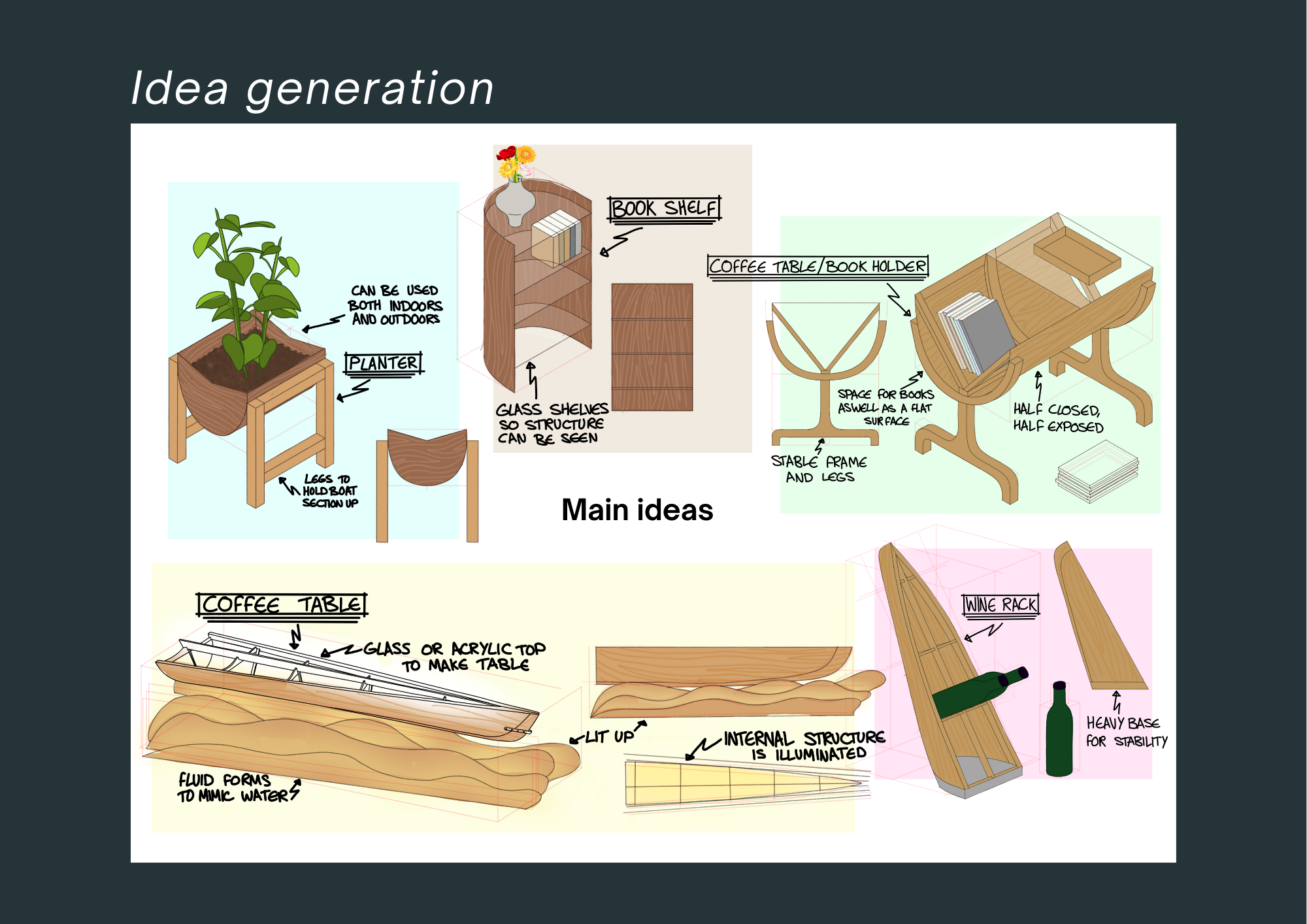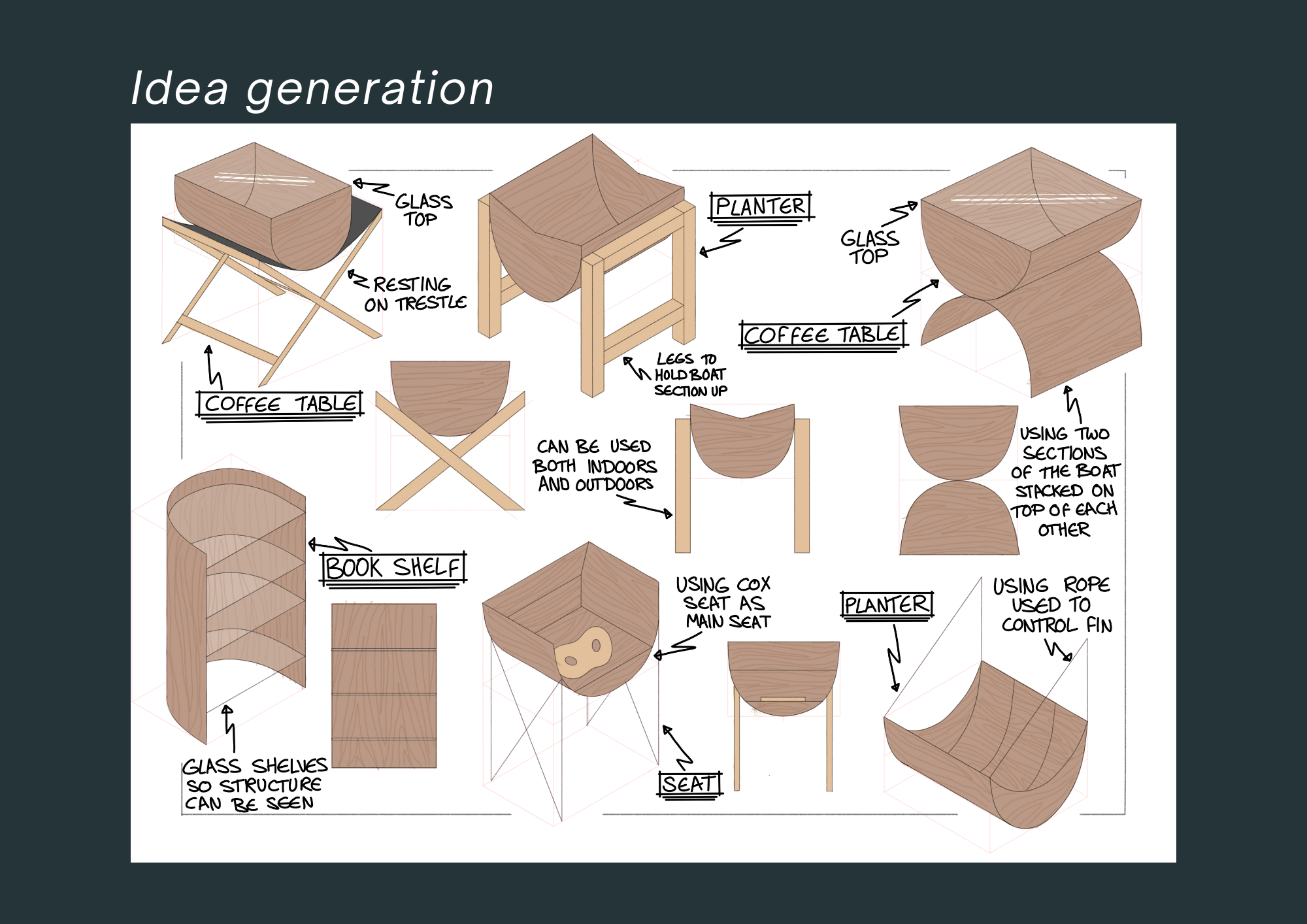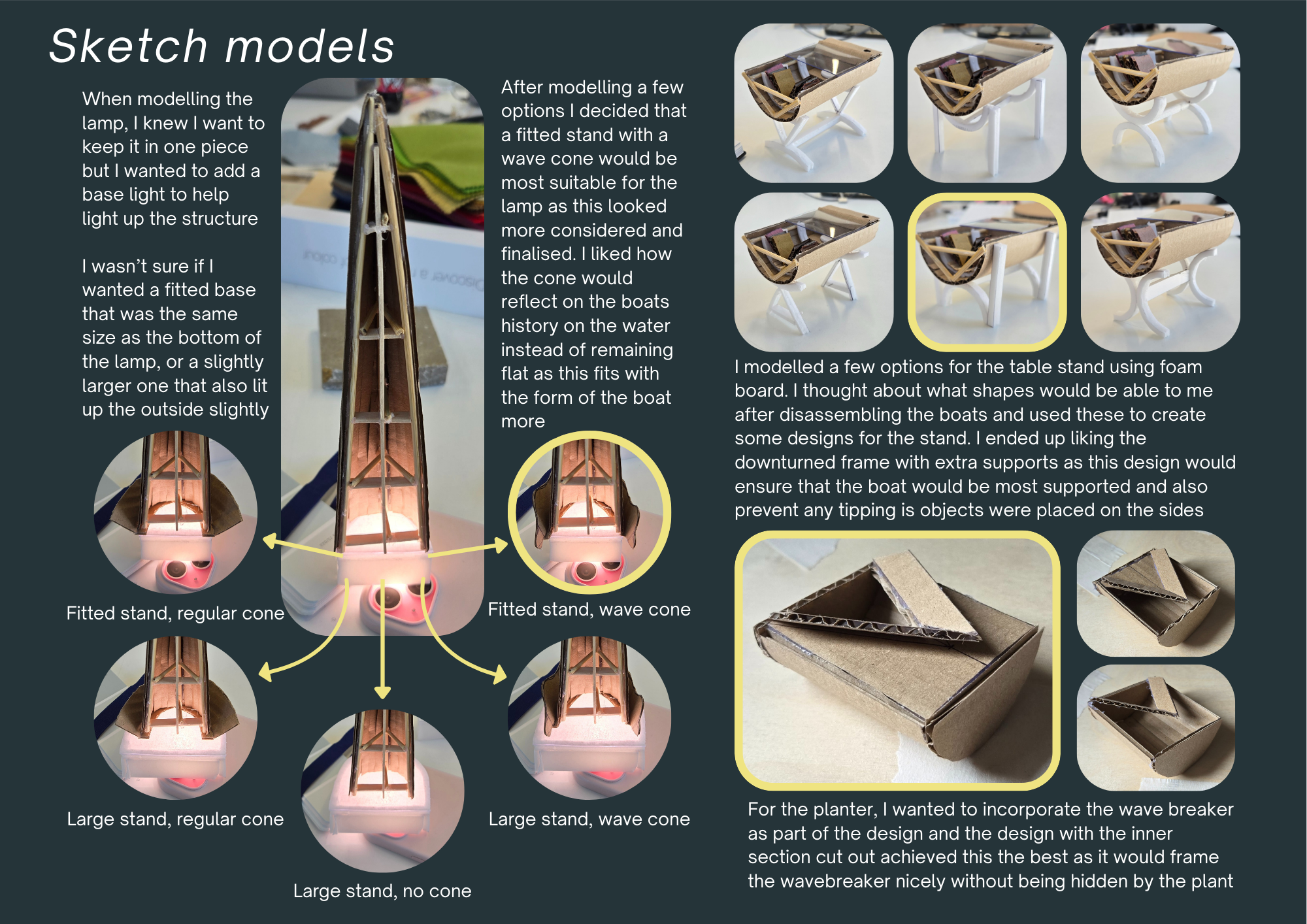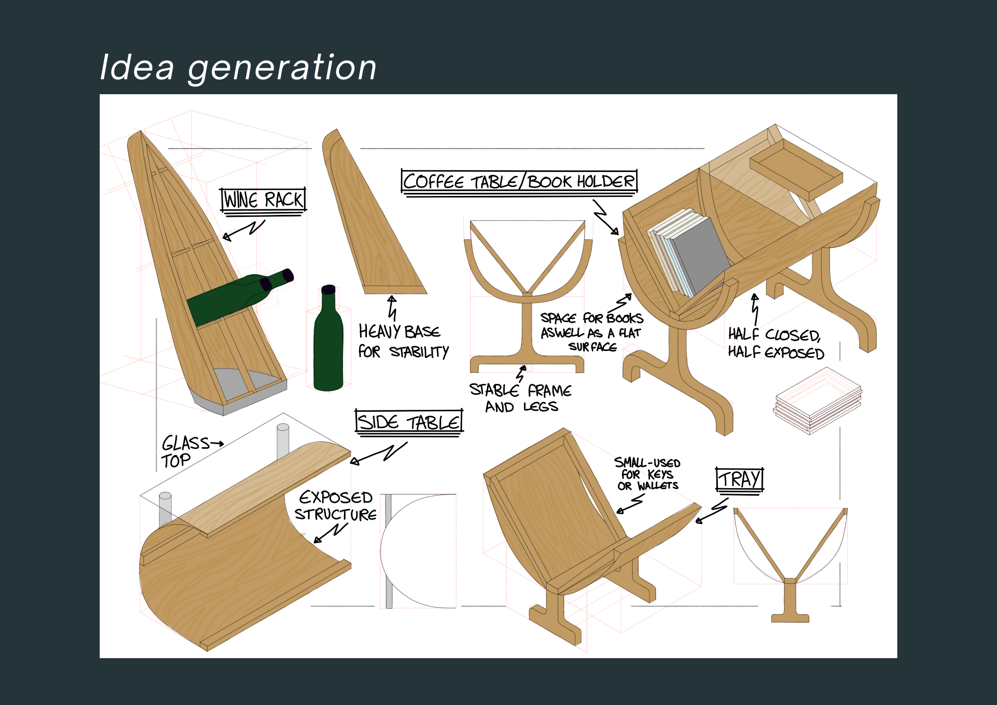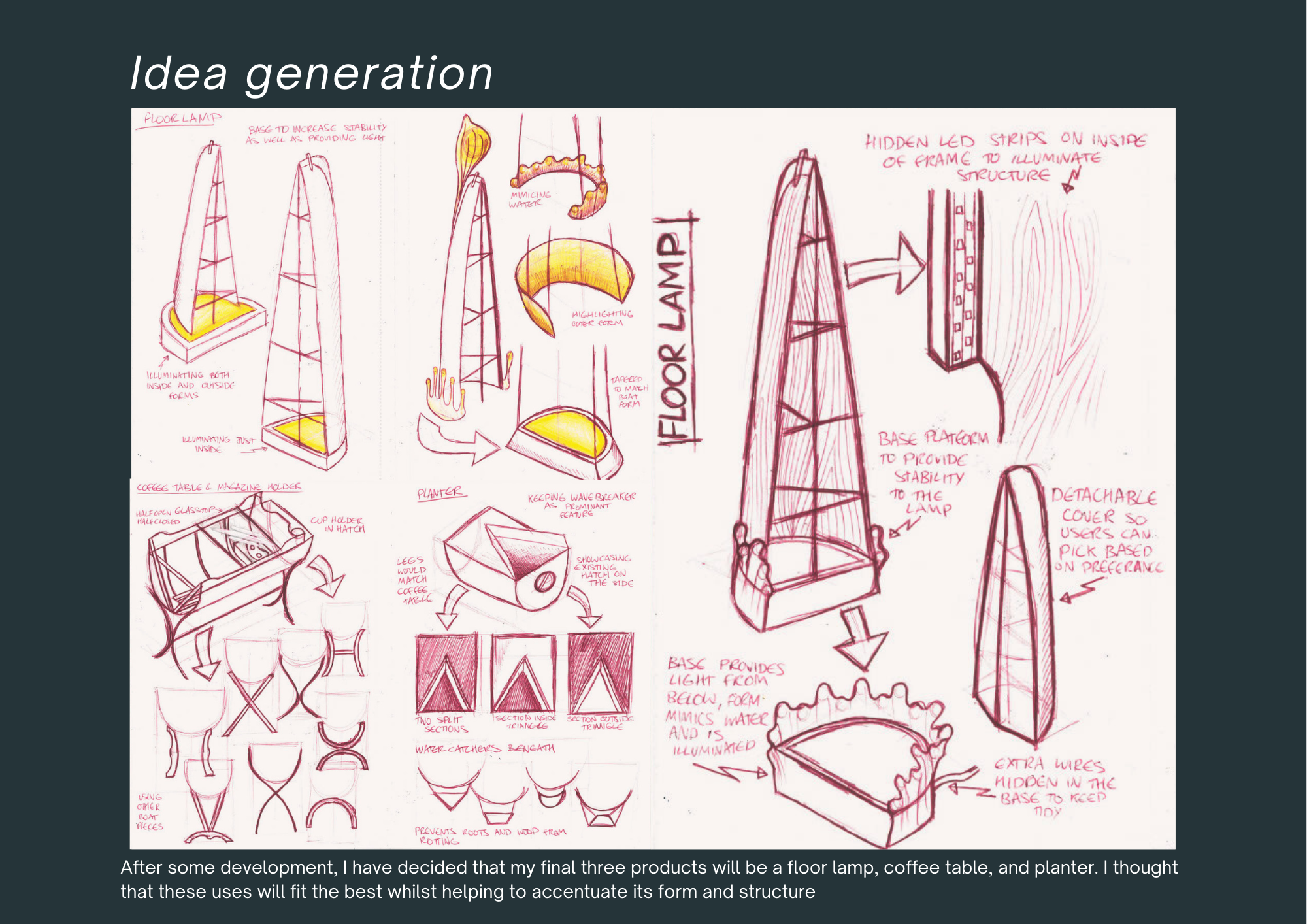 2. Web Portfolio pages of project work evidencing your design process including: Visual research, Idea generation and initial sketch modelling, Idea development, 3D CAD modelling and visualisations, Physical presentation models with appropriate contextualisation (narratives of provenance, narratives of production, narratives of use)
