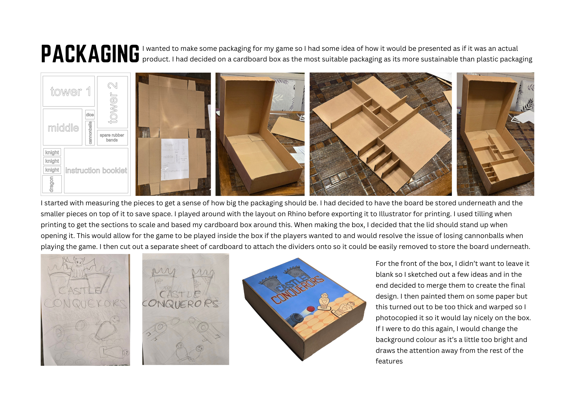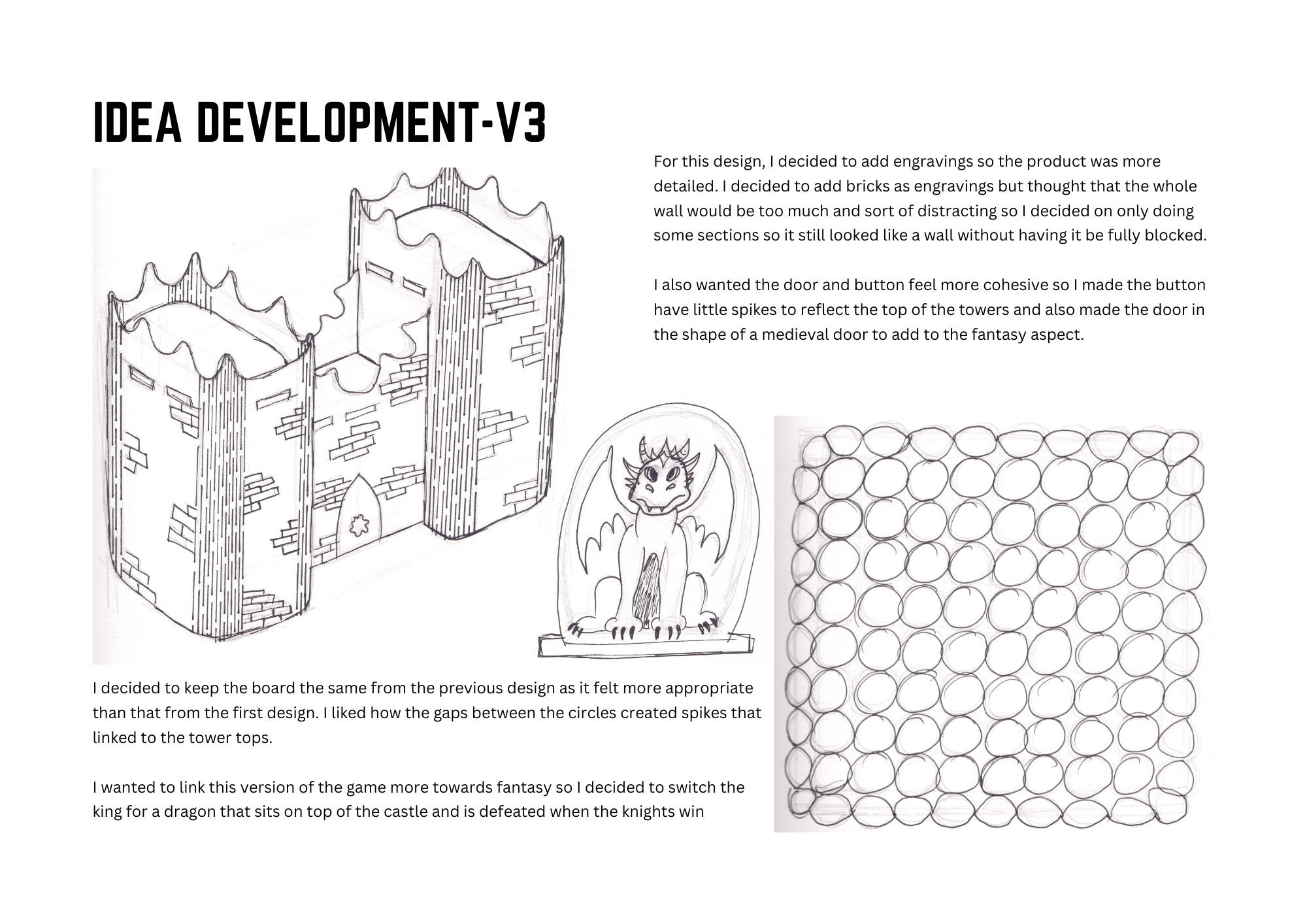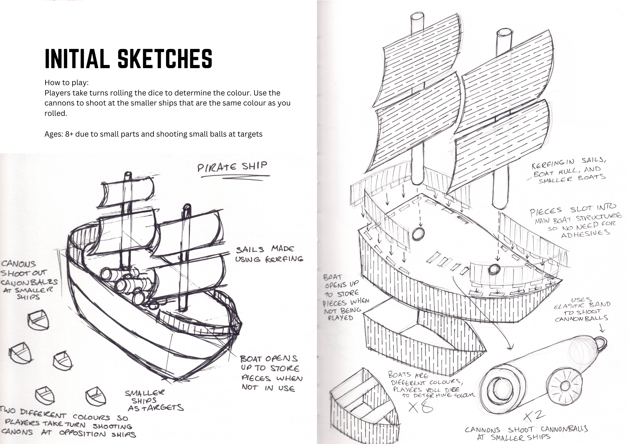 3. 2 x A3 presentation sheets (printed for the presentation and saved to DLE). One sheet to present the final Toy product, the other to show how the user would play the toy/game.