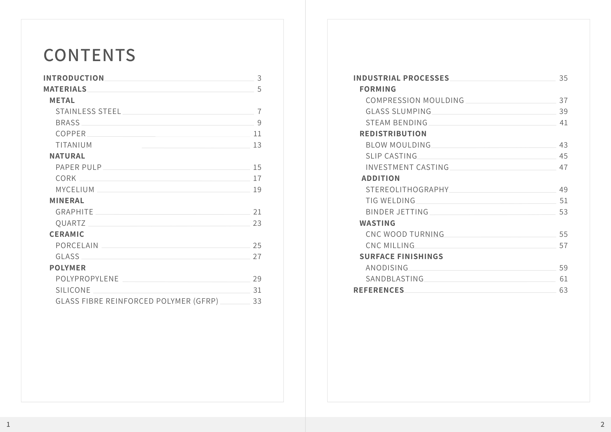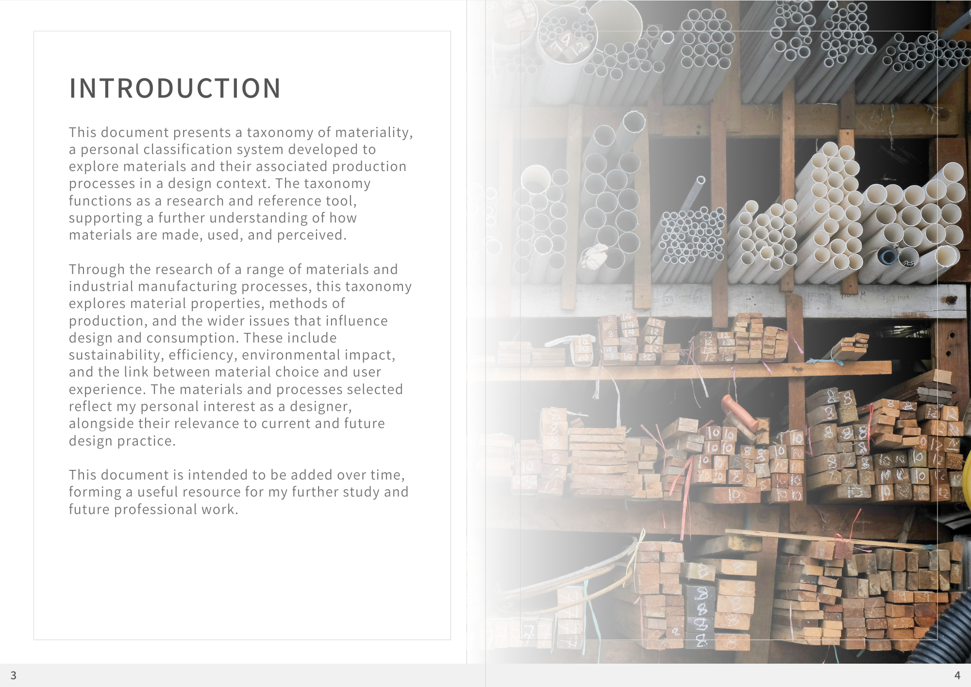 1. Taxonomy of Materiality. This personal classification system/tool should document your critical exploration of issues relating to materials and associated production processes. It should be elegantly presented graphically, output in pdf format.