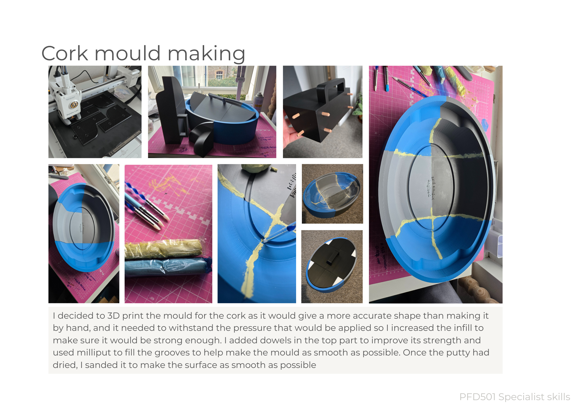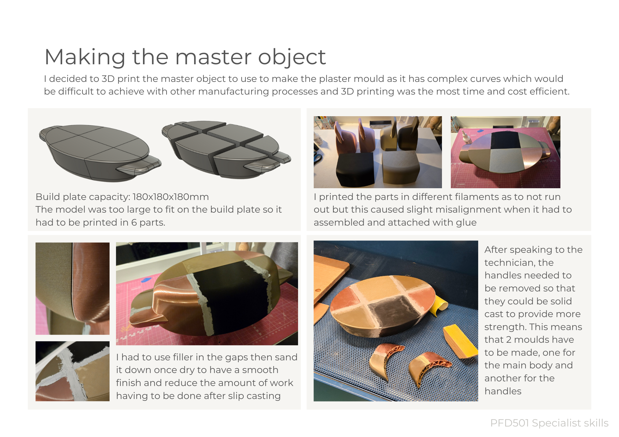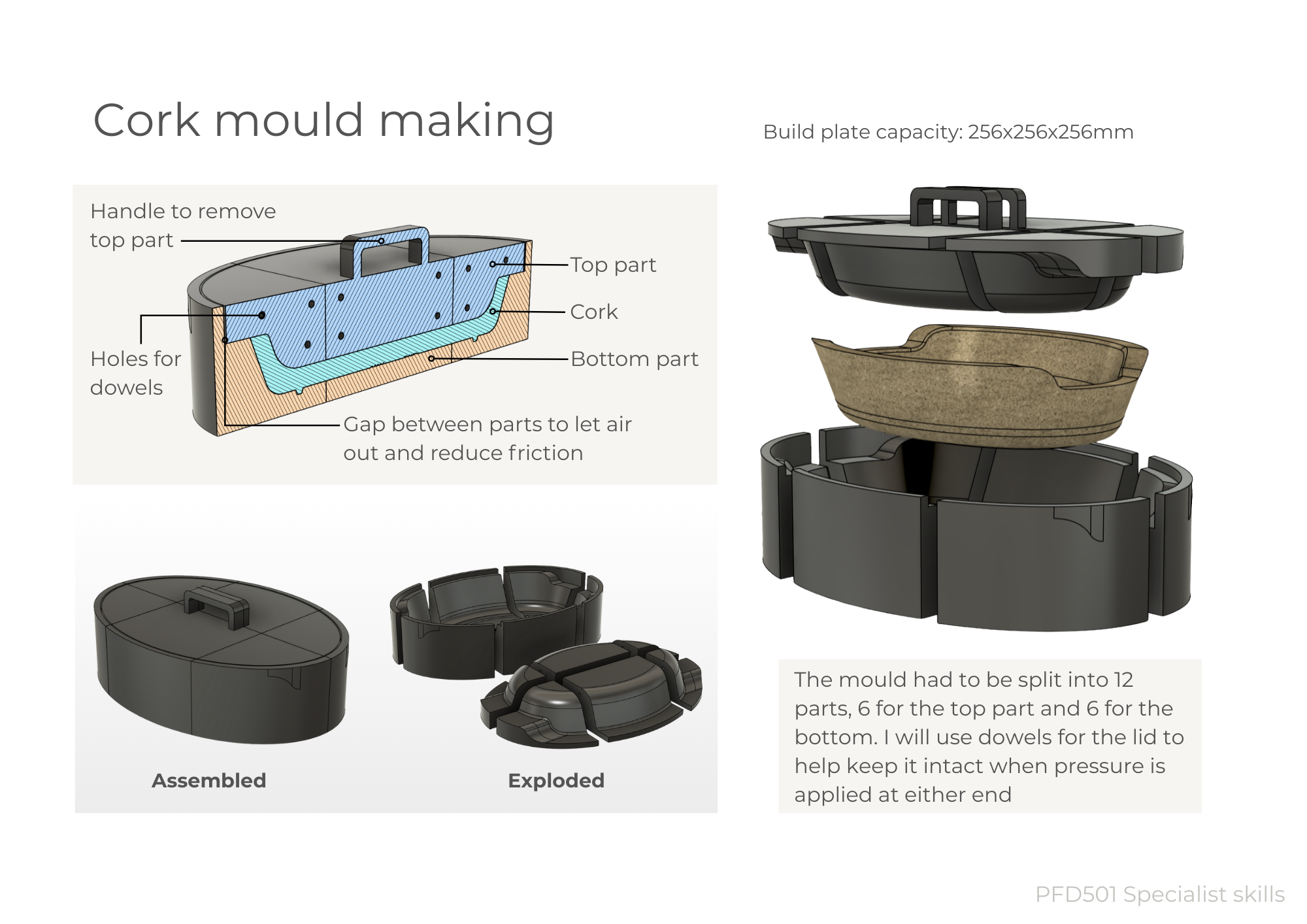Pay particular attention to the graphic layout of your project report to engage and communicate effectively with your audience. Include images of your CAD model and 3D visualisations, photos of your sketch model exploration and final models (a neat sketch model, a moulded prototype and associated moulds/tooling). A concise edited version should be presented at the Project Review Presentation, with an exhibition of your models and prototypes.