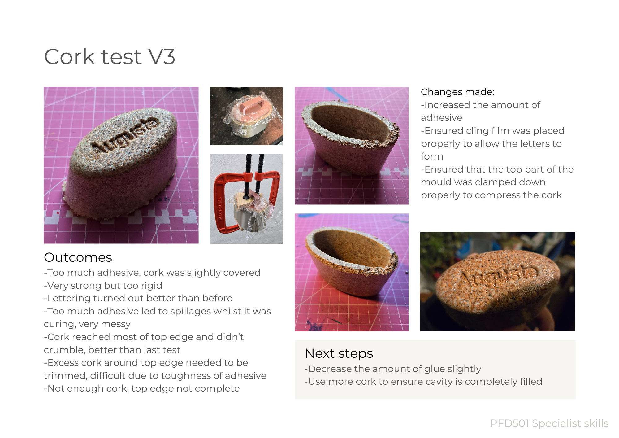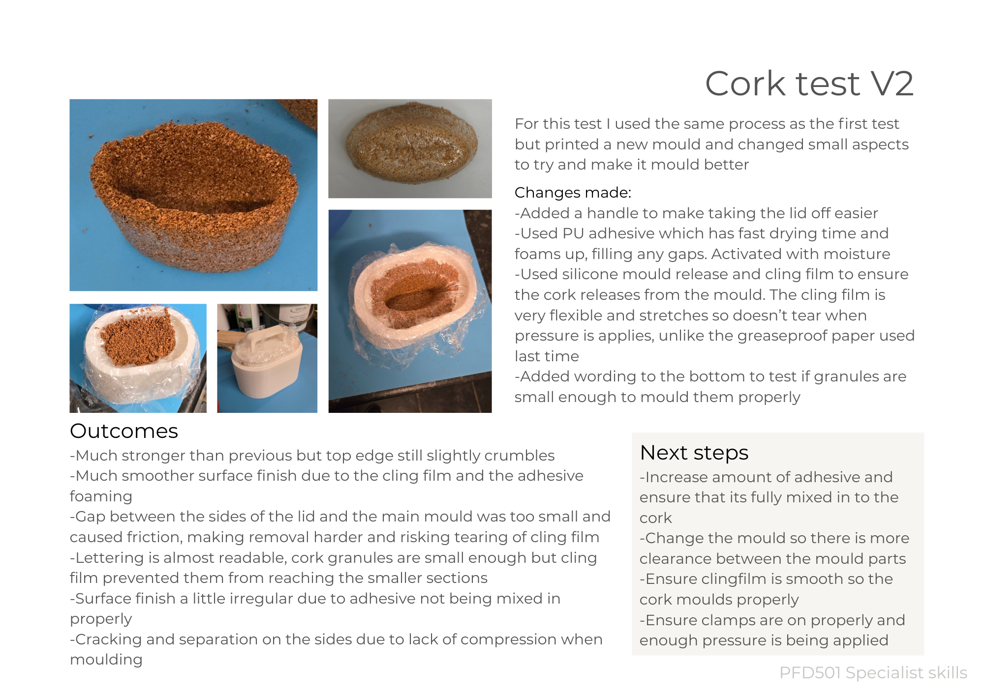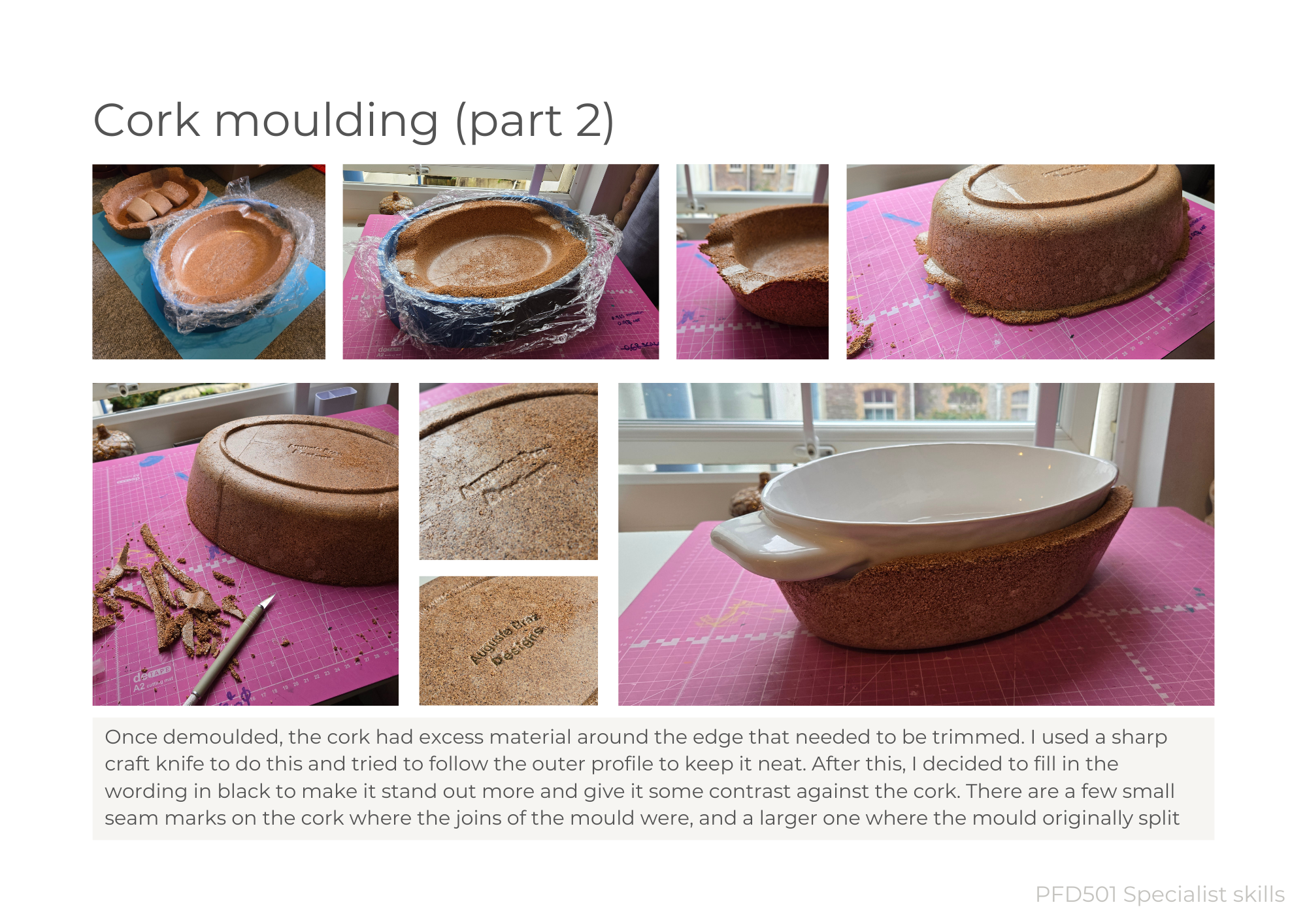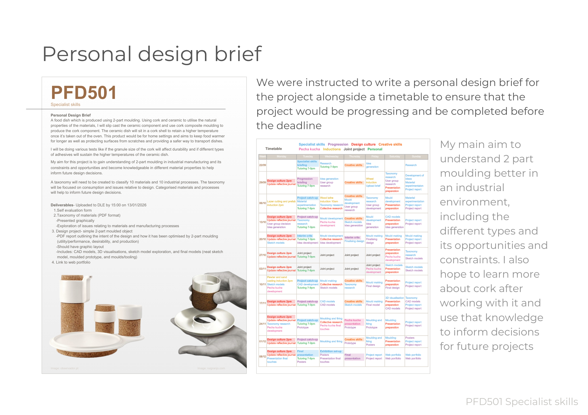 Pay particular attention to the graphic layout of your project report to engage and communicate effectively with your audience. Include images of your CAD model and 3D visualisations, photos of your sketch model exploration and final models (a neat sketch model, a moulded prototype and associated moulds/tooling). A concise edited version should be presented at the Project Review Presentation, with an exhibition of your models and prototypes.